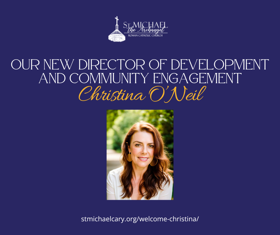 We are pleased to announce the appointment of Ms. Christina O’Neill as the Director of Development and Community Engagement for St. Michael the Archangel Parish. This newly established position will