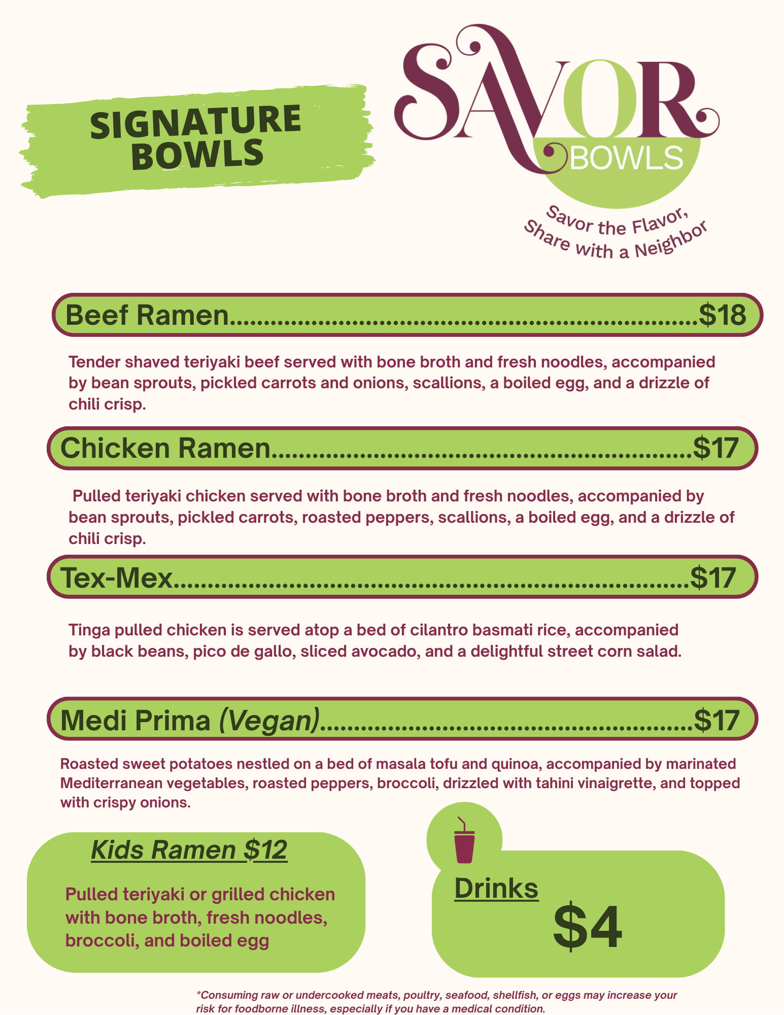 • Savor Food Truck Menu