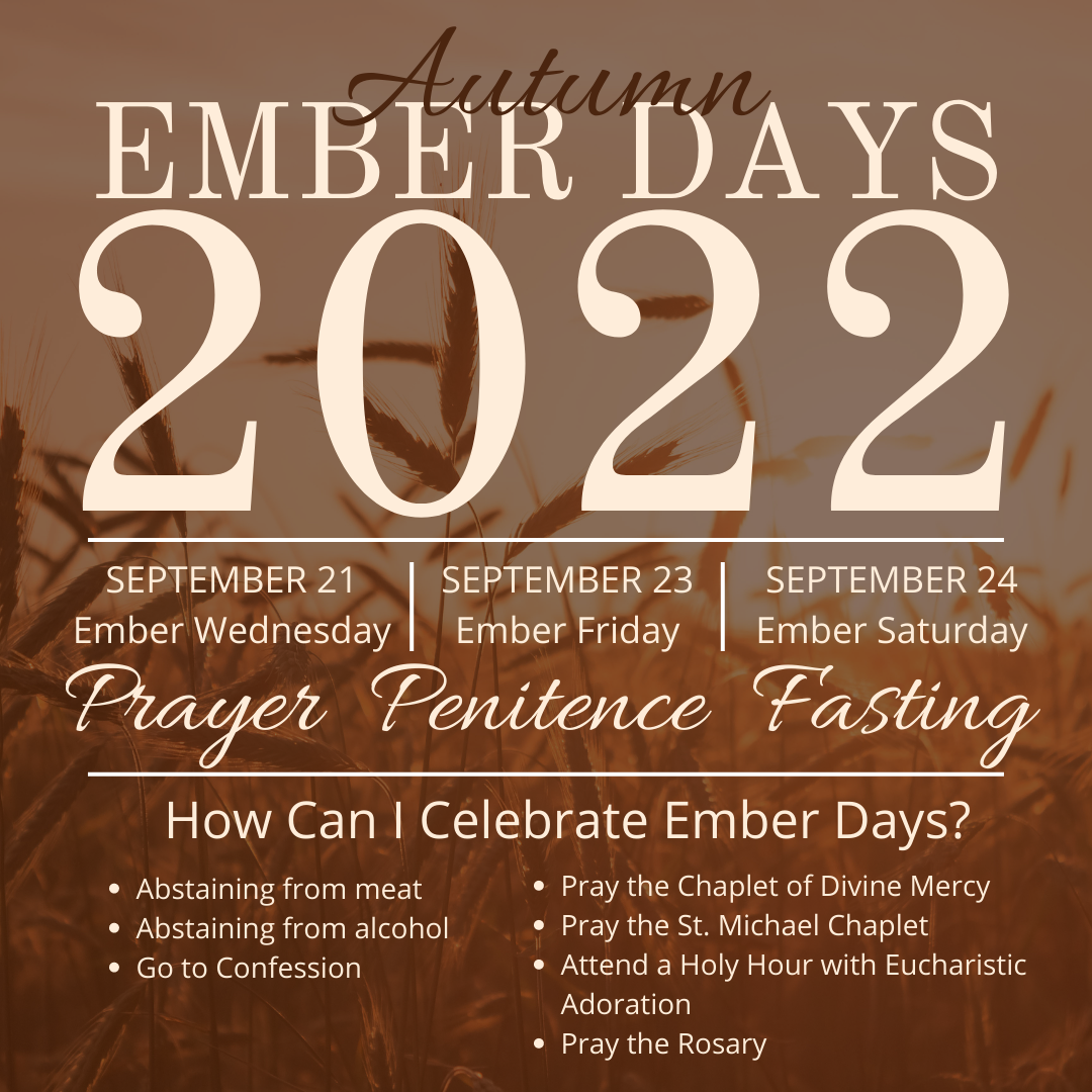 “Ember Days” occur four times throughout the Church year and are a short period of penitence and fasting. The Autumn Ember Days occur in the week following the Feast of