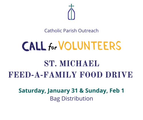 St. Michael Feed-A-Family Food Drive Volunteer Opportunities We need 4 volunteers per Mass time to help distribute bags on February 1, and to collect food on February 7-8. Sign up