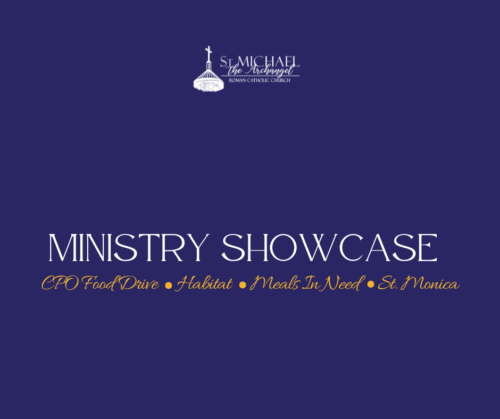 Discover. Connect. Serve. | Jan. 17–18 This Ministry Showcase Weekend, meet CPO Food Drive, Habitat Wake Ministry, Meals in Need, and St. Monica Ministry. Stop by the gathering space after