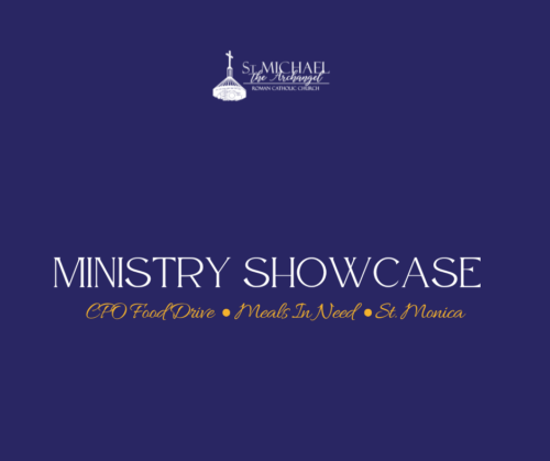 Discover. Connect. Serve. | Jan. 17–18 This Ministry Showcase Weekend, meet CPO Food Drive, Meals in Need, and St. Monica Ministry. Stop by the gathering space after Mass to learn