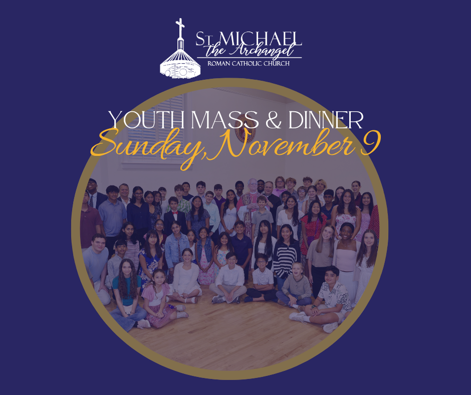 On Sunday, November 9, we invite teens in grades 5 – 12 to our regular Sunday 5:00pm Mass followed by a free dinner in the Parish Center. 5:00pm Mass in