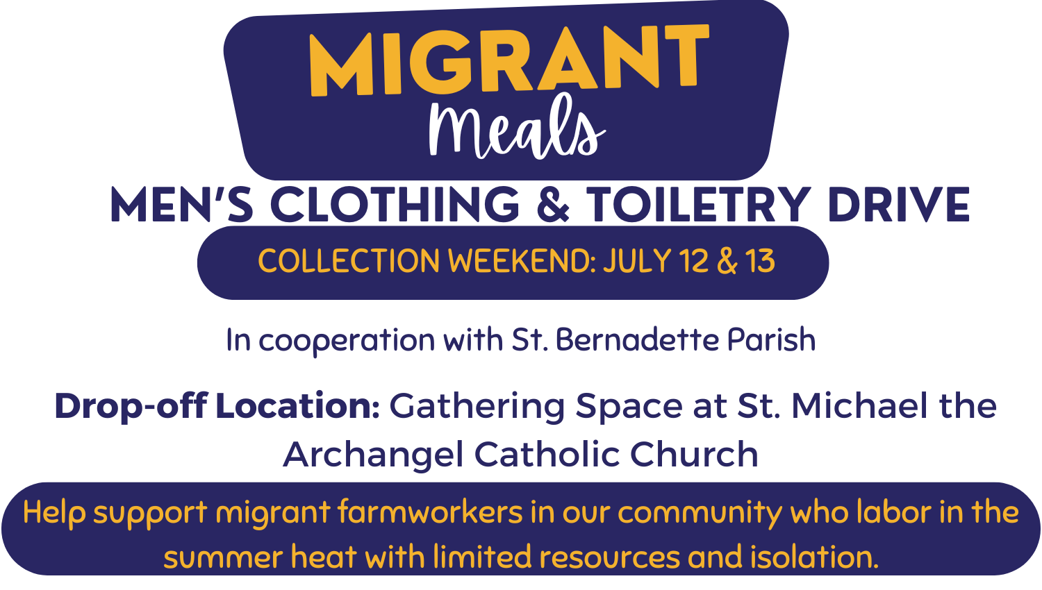 Read MoreWhile we will not be collecting food items for this drive, here is the list of the other items that we will be collecting: Hats(baseball caps), work pants sizes 32-38