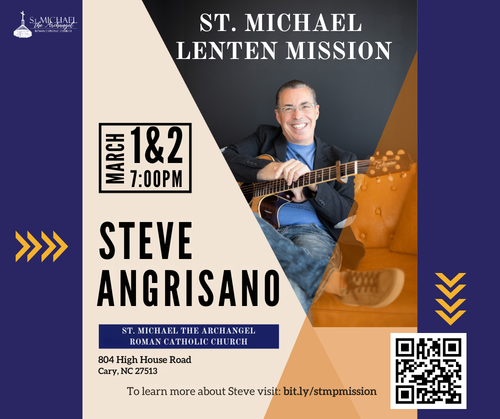 Join us for a powerful Lenten Parish Mission with Steve Angrisano, an internationally recognized Catholic composer, storyteller, and evangelist whose ministry connects head to heart through faith, humor, and song.