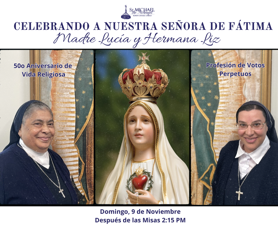 Acompáñanos el domingo 9 de Noviembre para una celebración especial en honor a los Votos Perpetuos de Sor. Lizbeth y los 50 Años de Vida Religiosa de Madre Lucía. Después